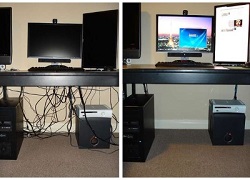 Iz dzīves:Zem Jūsu biroja galda stāv dators ar pārsteidzošo vadu mudžekli un Jūs klusi ienīstat apkopēju, jo pēc telpas kopšanas Jums nedarbojas internets. Mēs sakārtosim vadus. |